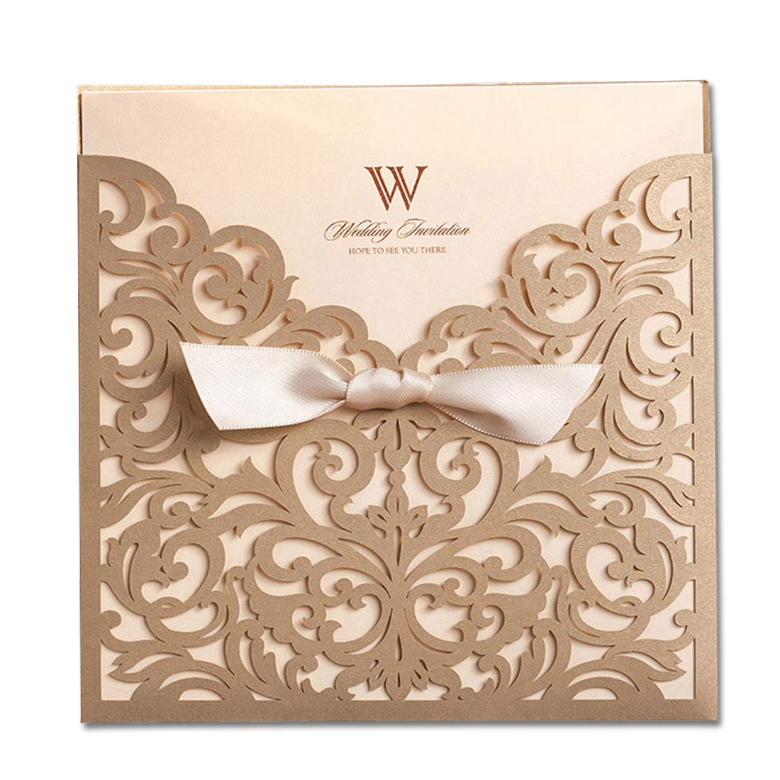 Amazon Com Wishmade Square Gold Laser Cut Wedding Invitations With